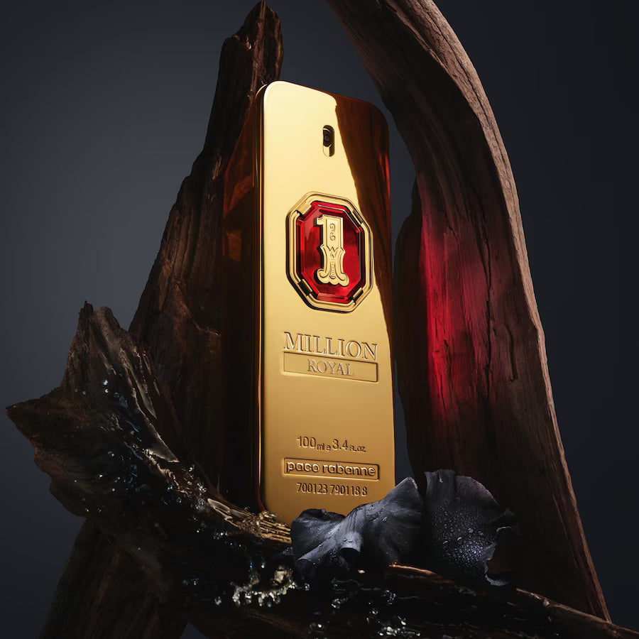 Wejdź do królestwa 1 Million Royal, do którego przepustką jest niewymuszona pewność siebie i siła autoekspresji. Odnajdź niczym nieograniczoną wolność, by żyć na własnych zasadach. Pomoże ci w tym woda perfumowana 1 Million Royal – świeża, drzewno-ambrowo-aromatyczna mieszanka, w której energetyzująca bergamotka łączy się z wyrazistą lawendą i zmysłową żywicą benzoinową, a głębi dodaje paczula i drzewo cedrowe. W 1 Million Royal, kultowy, metaliczny flakon w kształcie sztabki złota zyskał szlachetny akcent w postaci królewskiej czerwieni. Wizjonerski, śmiały przedmiot jest echem dziedzictwa, które go poprzedzało i jednocześnie wprowadza nas w odważną nową erę, która może być tylko 1 Million Royal.